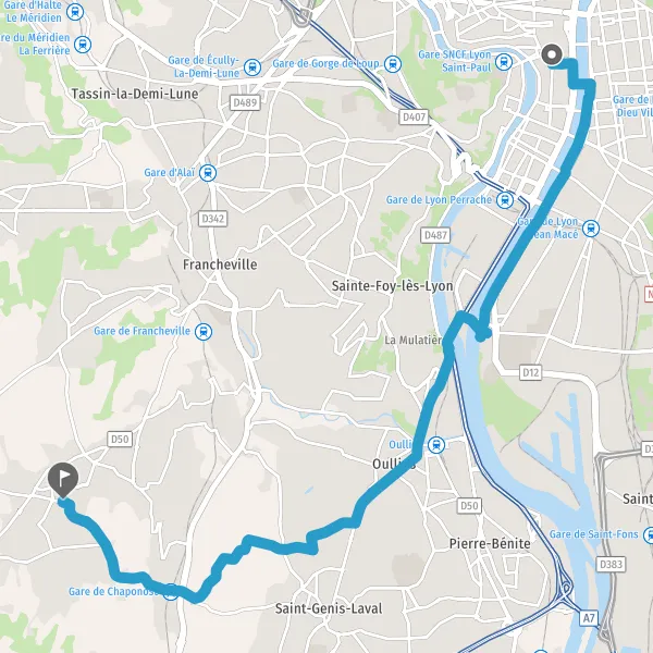 Prendre à gauche la piste cyclable Quai Perrache et continuer sur 400 mètres