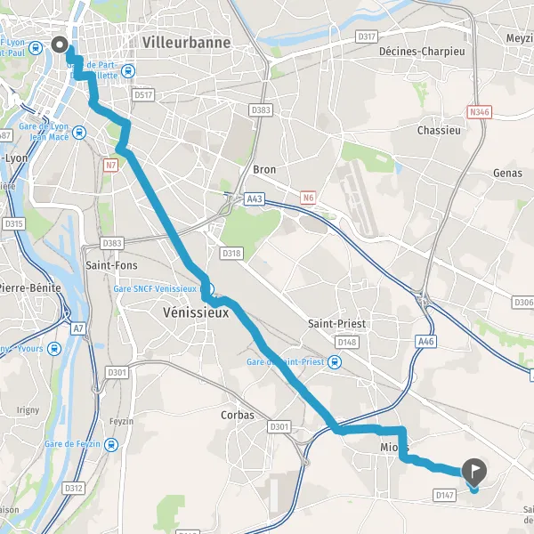 Prendre à gauche la piste cyclable Route de Lyon et continuer sur 500 mètres