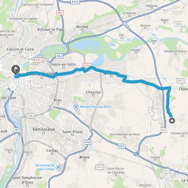 Prendre à droite Cours Émile Zola et continuer sur 3,6 kilomètres