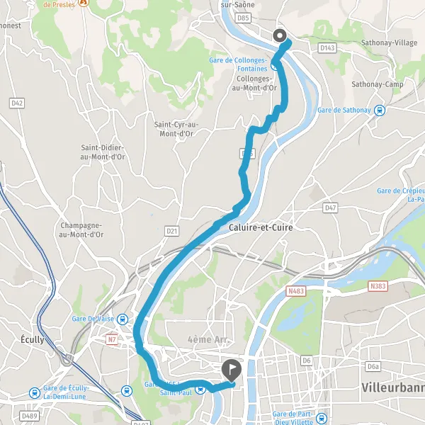 Prendre à gauche la voie partagée Quai Arloing et continuer sur 550 mètres