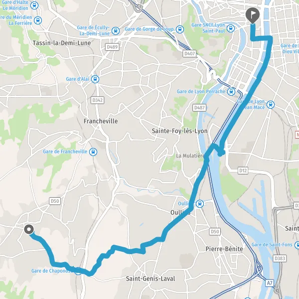 Continuer sur la piste cyclable Pont Routier de la Mulatière sur 190 mètres