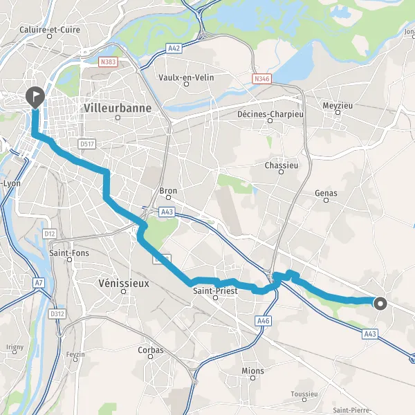 Prendre à droite la piste cyclable Route de Lyon et continuer sur 650 mètres