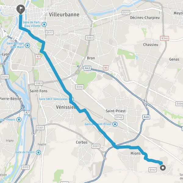 Au rond-point, prendre la 4ème sortie Route de Mions et continuer sur 1,0 kilomètre