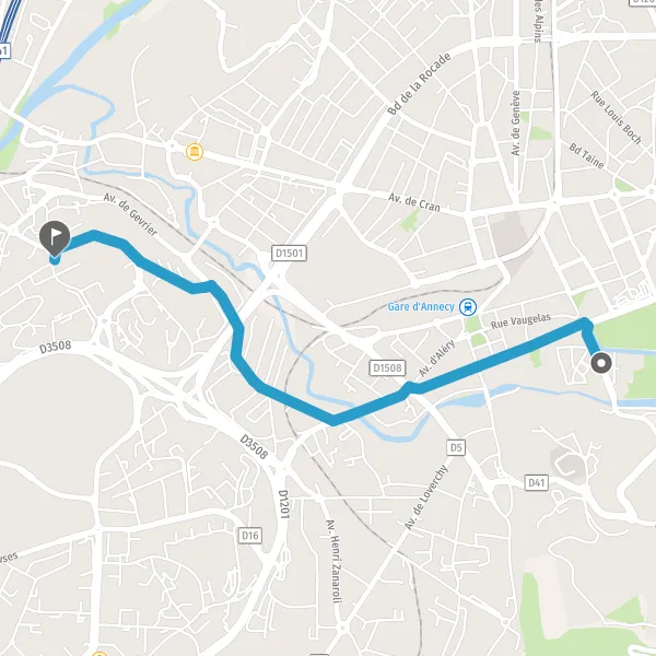 Trajet de Annecy (74000) à Cran-Gevrier à vélo