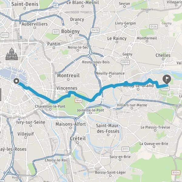 Prendre à droite la piste cyclable Avenue de Nogent et continuer sur 2,4 kilomètres