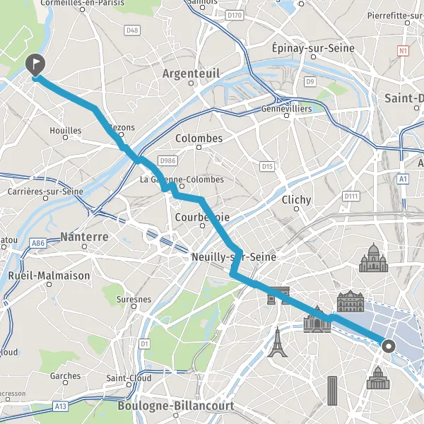 Au rond-point, prendre la 2ème sortie Boulevard de Bezons et continuer sur 650 mètres