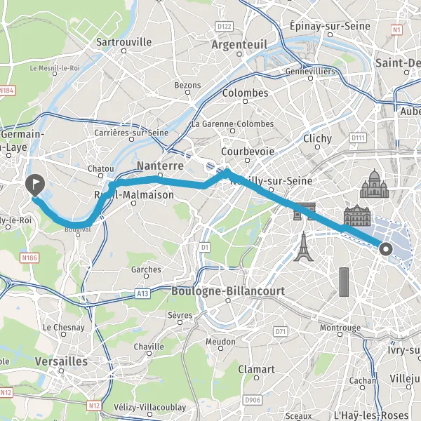 Prendre à gauche la piste cyclable Rue de Rivoli et continuer sur 2,0 kilomètres