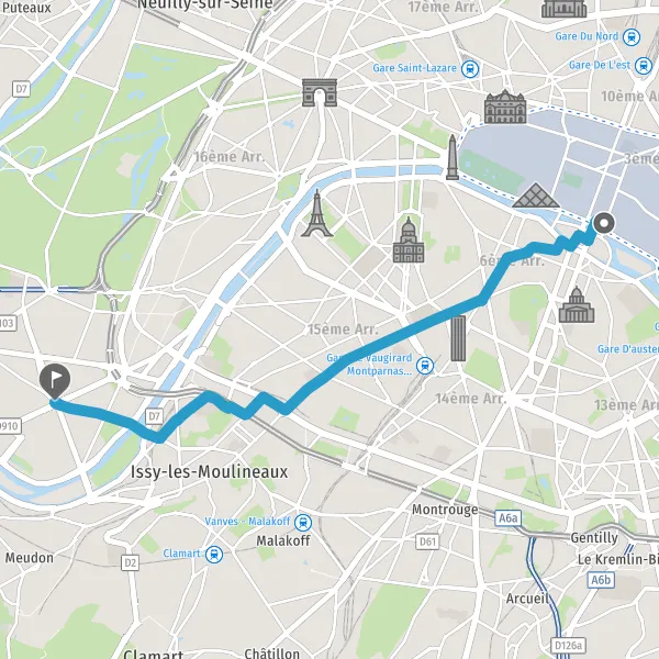 Prendre légèrement à droite la piste cyclable Rue de Vaugirard et continuer sur 3,3 kilomètres