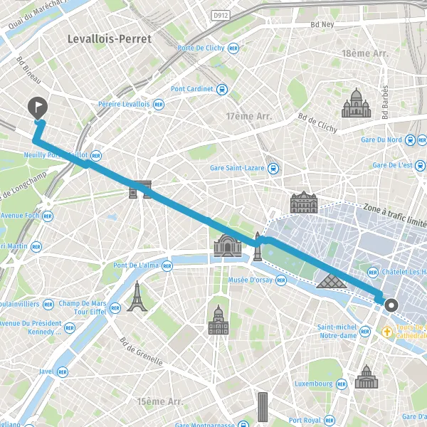 | Distance à vélo | 6,9 km à 7,0 km |