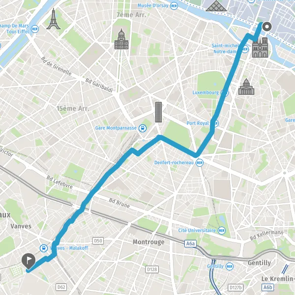 | Distance à vélo | 7,3 km à 7,9 km |