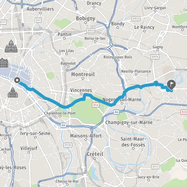 Prendre à droite la piste cyclable Avenue de Nogent et continuer sur 2,4 kilomètres