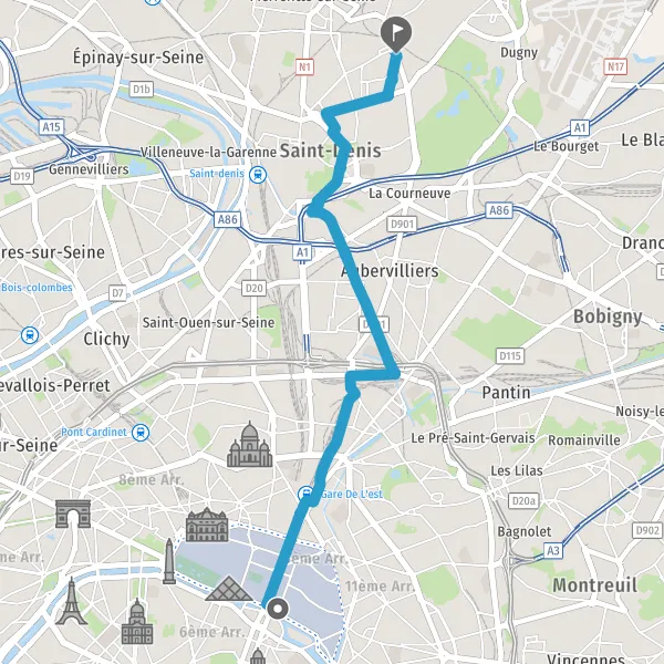 Prendre à gauche la piste cyclable Rue d'Aubervilliers et continuer sur 400 mètres