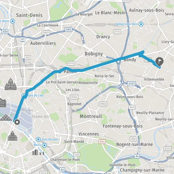 Prendre à gauche Piste cyclable de l'Ourcq et continuer sur 1,7 kilomètre