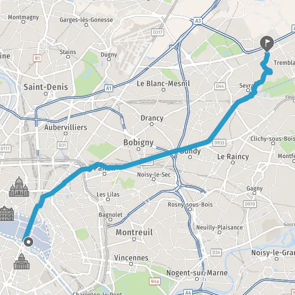 Prendre légèrement à droite la piste cyclable Piste cyclable de l'Ourcq et continuer sur 550 mètres
