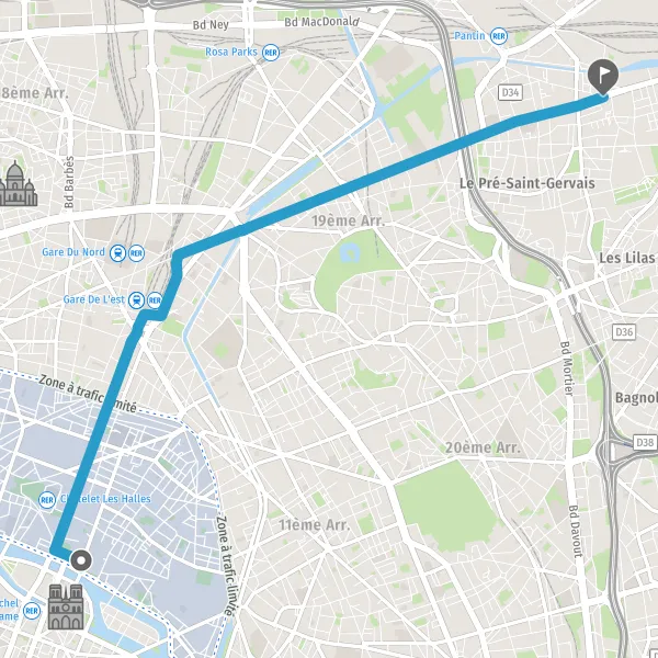 | Distance à vélo | 6,8 km à 7,1 km |