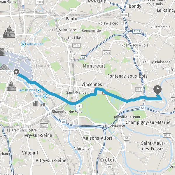 Au rond-point, prendre la 2ème sortie Avenue de Saint-Mandé et continuer sur 600 mètres