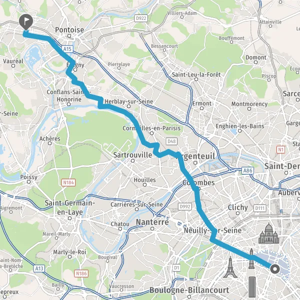 Prendre légèrement à droite la piste cyclable Boulevard de l'Oise et continuer sur 500 mètres