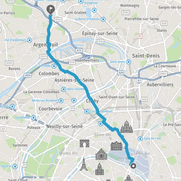 Au rond-point, prendre la 2ème sortie Rue d'Argenteuil et continuer sur 450 mètres