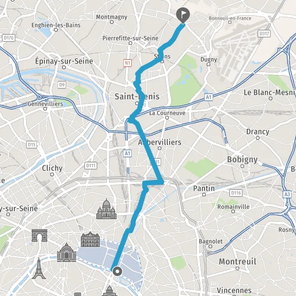 Prendre à gauche la piste cyclable Rue d'Aubervilliers et continuer sur 400 mètres