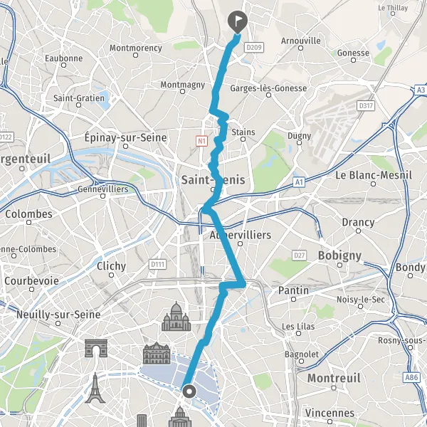 Prendre à gauche la piste cyclable Rue d'Aubervilliers et continuer sur 400 mètres