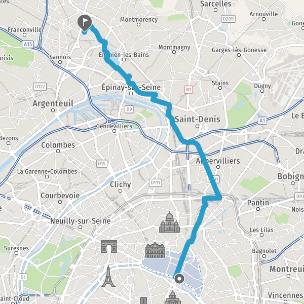 Prendre légèrement à droite la piste cyclable Rue d'Enghien et continuer sur 70 mètres