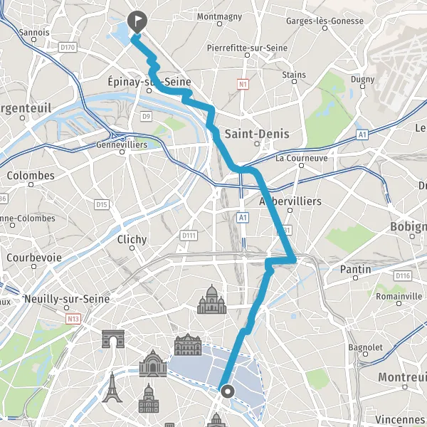 Prendre à droite la piste cyclable Rue du Château Landon et continuer sur 1,7 kilomètre