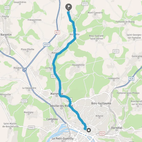Prendre à gauche la voie partagée Avenue du Mont aux Malades et continuer sur 80 mètres