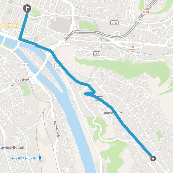 | Distance à vélo | 4,9 km à 5,1 km |