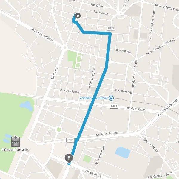 | Distance à vélo | 2,3 km à 2,4 km |