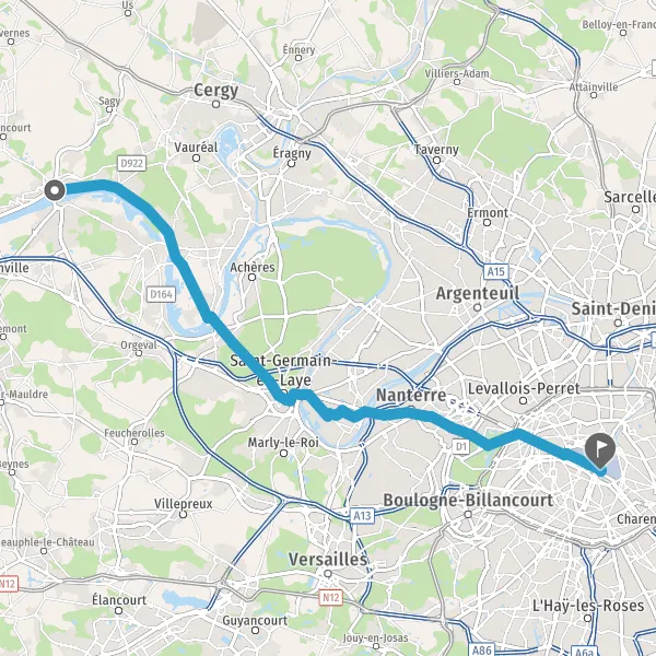Prendre à gauche la piste cyclable Quai de Dion Bouton et continuer sur 160 mètres
