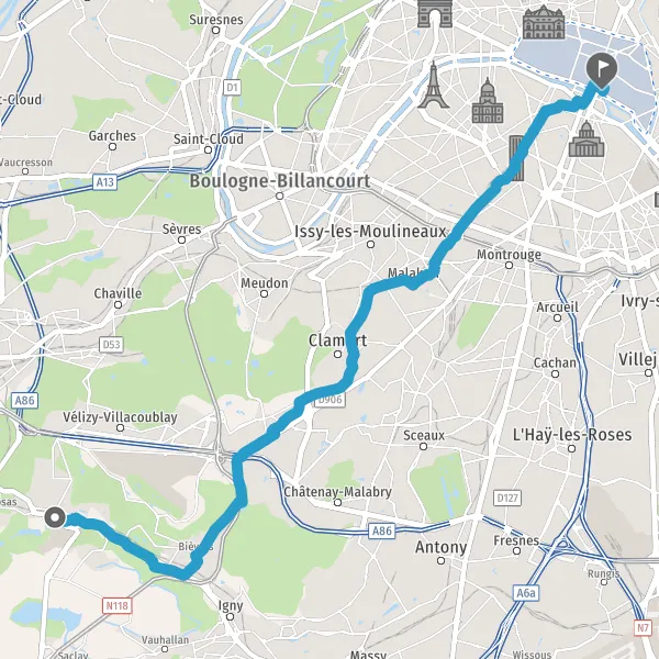 Prendre à gauche Rue du Petit Bièvres et continuer sur 300 mètres