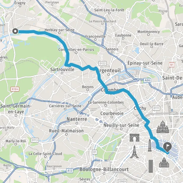 Prendre à droite Quai de la Seine et continuer sur 2,7 kilomètres