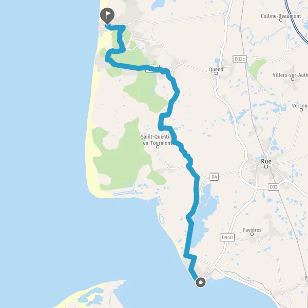 Prendre à gauche la piste cyclable Rue de la Dune et continuer sur 1,4 kilomètre