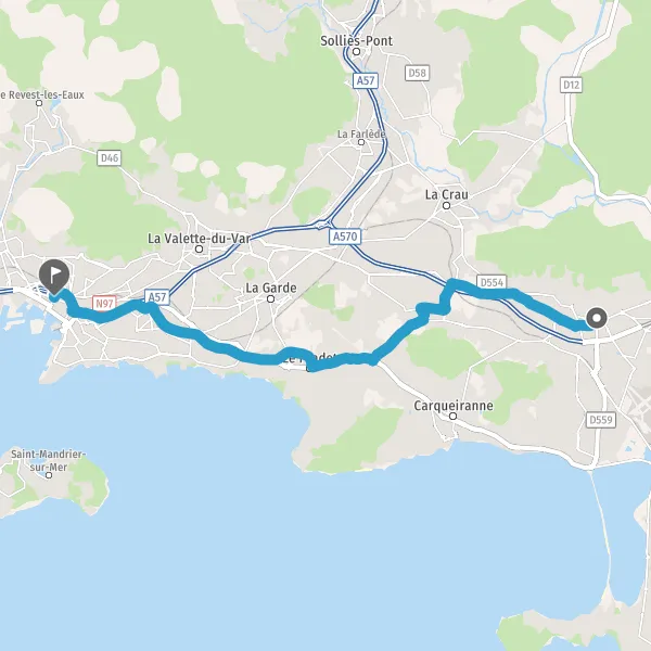 Prendre à gauche Route de Toulon et continuer sur 550 mètres