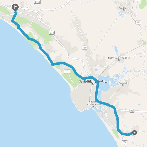 Au rond-point, prendre la 3ème sortie la piste cyclable Rond-Point de L'Océan et continuer sur 100 mètres
