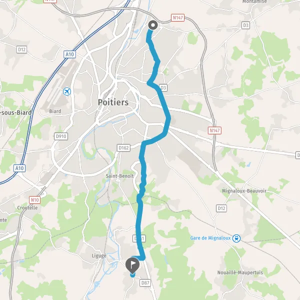 Prendre à gauche Route de Ligugé et continuer sur 130 mètres