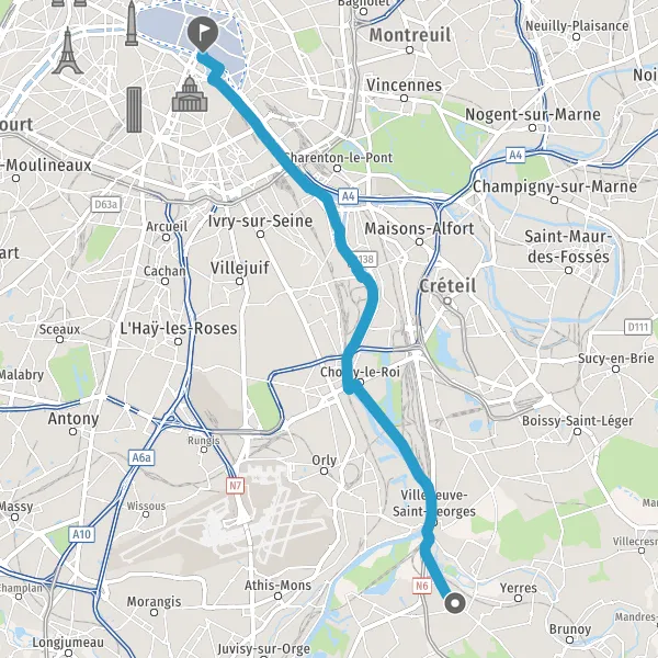 Prendre légèrement à gauche la piste cyclable Boulevard Paul Vaillant-Couturier et continuer sur 3,3 kilomètres