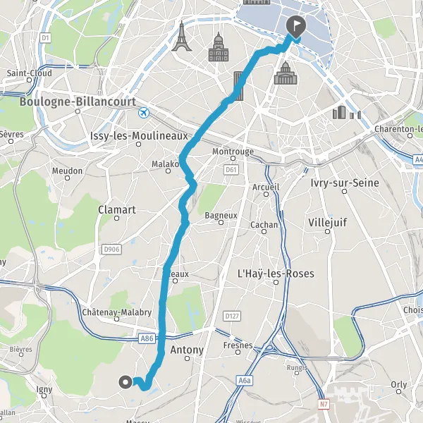 Prendre à gauche la piste cyclable Avenue du Maine et continuer sur 500 mètres