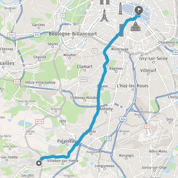 Prendre légèrement à droite la piste cyclable Boulevard de Palaiseau et continuer sur 2,5 kilomètres