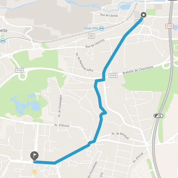 | Distance à vélo | 2,7 km à 2,8 km |