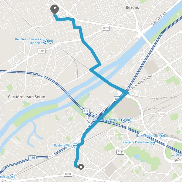 Continuer sur la piste cyclable Passerelle Nanterre - Houilles sur 450 mètres