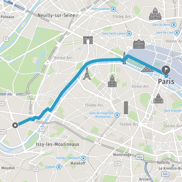 Prendre légèrement à droite la piste cyclable Avenue de Versailles et continuer sur 260 mètres