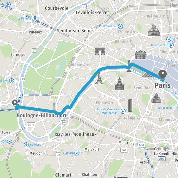 Prendre légèrement à droite la piste cyclable Route de la Reine et continuer sur 25 mètres