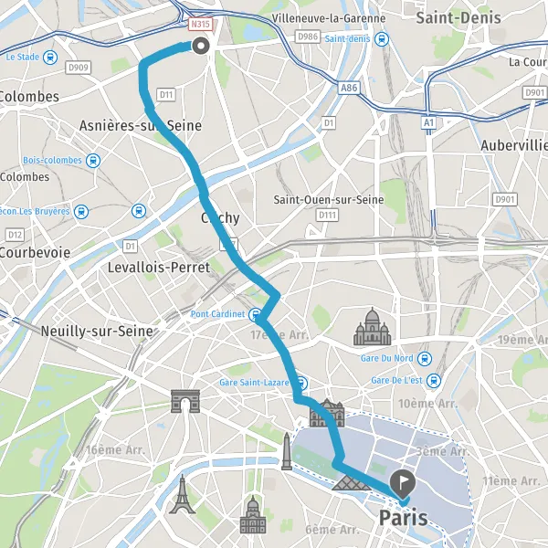 Prendre légèrement à gauche la piste cyclable Pont de Clichy et continuer sur 2,4 kilomètres