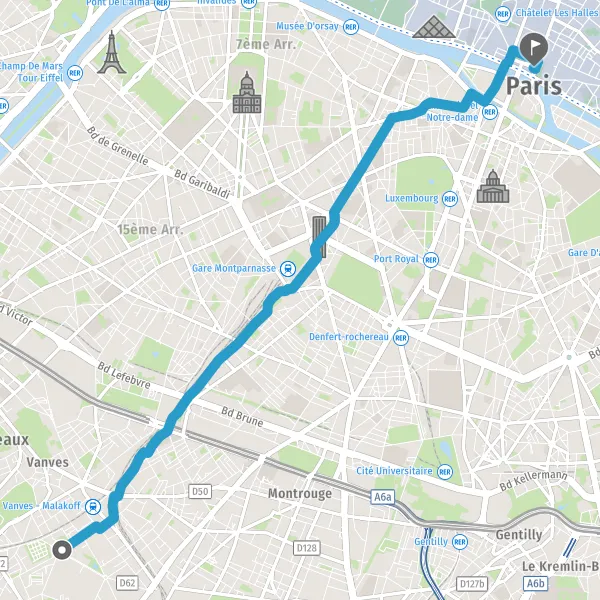 | Distance à vélo | 7,5 km à 7,8 km |