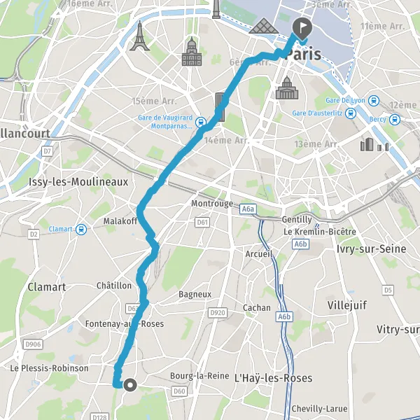 Prendre à gauche la piste cyclable Avenue du Maine et continuer sur 500 mètres