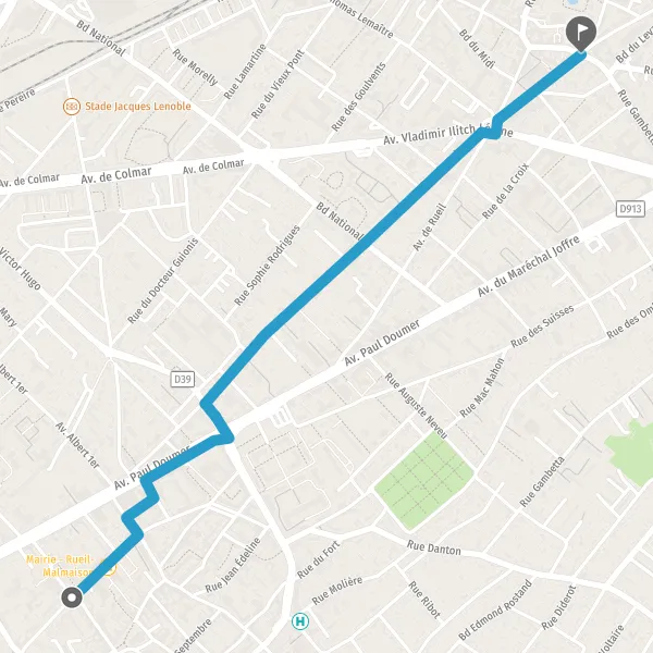 | Distance à vélo | 2,2 km à 2,3 km |