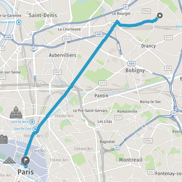 Prendre à droite Rue du Faubourg Saint-Martin et continuer sur 1,1 kilomètre