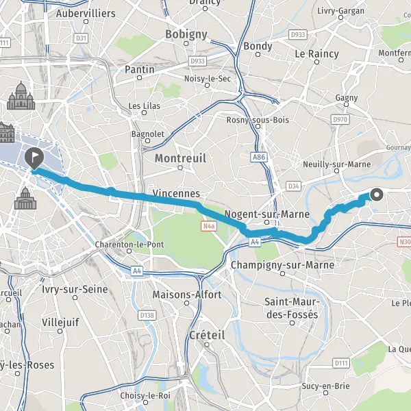 Prendre légèrement à droite la piste cyclable Avenue de Nogent et continuer sur 2,3 kilomètres