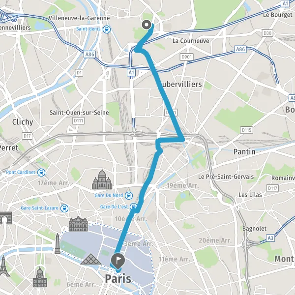 Prendre à droite la piste cyclable Rue d'Aubervilliers et continuer sur 1,7 kilomètre